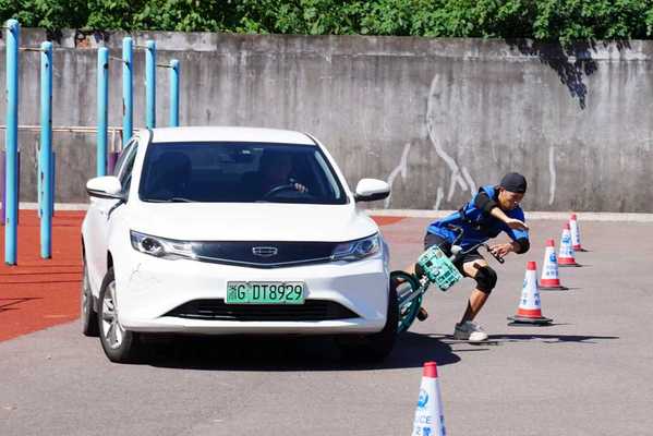 随后,活动进入最受关注的“交通事故场景还原”环节。工作人员围绕校园高频事故场景,对“开门杀”“内轮差”“鬼探头”“多人搭乘电动车”等典型情形开展模拟。主持人结合近年来校园周边真实事故案例,讲解安全风险要点,并现场演示“荷式开门法”等实用避险方法,让同学们在直观感受场景模拟的冲击中,进一步强化交通安全风险认知。